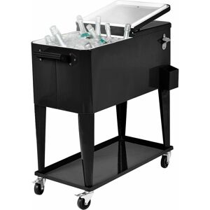 With the practical rolling cooler cart , cakes or other sensitive foods can find a perfect place during parties. Inside the cooler cart has 2 compartments with an insulating layer. In this way, cold or warm dishes and other foods are kept fresh longer and protected from external influences. Thanks to the handles and 4 360swivel wheels , you can move the trolley comfortably and freely. Protected with high-quality insulation and the robust iron outer shell, this rolling patio cooler cart is able to keep food fresh for up to 72 hours! Costway 76L Stainless Steel Ice Chest Rolling Cooler Cart Outdoor Wicker Tub Trolley in Black
