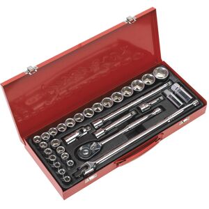 Forged Chrome Vanadium steel sockets and bits. Sockets heat treated and chrome plated with a fully polished mirror finish. Knurled ring to assist gripping with oily fingers. Supplied in storage case. Features & Benefits: • Forged Chrome Vanadium steel sockets and bits. • Sockets heat treated and chrome plated with a fully polished mirror finish. • Knurled ring to assist gripping with oily fingers. • Contents: Lengths 55 and 100mm; M5, M6, M7, M8, M9, M10, M12, M13, M14, Lengths 140 and 200mm; M8, M9, M10, M11, M12, M13, M14. • Supplied in composite storage case. • Lifetime guarantee*. • Model No. AK2198 Specifications: Model No AK2198 Brand: Premier Contents: 1/2"Sq Drive Ribe Socket Bits; Length 55mm -M5, M6, M7, M8, M9, M10, M12, M13, M14, Length 100mm - M5, M6, M7, M8, M9, M10, M12, M13, M14, Length 140mm - M8, M9, M10, M11, M12, M13, M14, Length 200mm - M8, M9, M10, M11, M12, M13, M14 Drive: 1/2"Sq Maximum Length: 55mm Minimum Length: 200mm Nett Weight: 5.65kg
