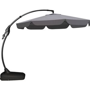 GENERAL DESCRIPTION This is a sturdy 300cm round patio umbrella with a powder-coated aluminum pole. It features a heavy-duty, water-resistant canopy made of PU coated polyester, providing UPF 50+ protection and fade resistance. The umbrella is designed for easy operation with a handle and crank lift mechanism, and it includes an innovative auto-lock system for adjusting the opening angle. TECHNICAL SPECIFICATIONS Colour: Beige, Grey Item Weight: 28 KG Package Dimensions: 300D x 300W x 274H Centimetres Assembly Required: 30 minutes Material: Aluminum, Polyester Weather-resistant: Yes Feature: Adjustable OTHER INFORMATION The offset patio umbrella includes a base with hidden wheels for easy movement. The base must be filled with 120KGS of sand and water for stability. The base and umbrella are shipped separately.