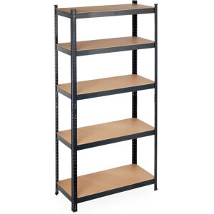 The stockroom shelves offer plenty of room for organisation. They provide vital storage for heavier items in the workshop, garage, pantry, cellar, shed or warehouse. Store your tyres, machines, tools, canned goods and other heavy items on the spacious shelving. Assemble the sturdy shelving unit made from steel according to your needs - the height of the 5 shelves can be adjusted. If required, you can divide the shelving unit in half and use the two parts separately. Tip: The practical interlocking plug-in system does not require any screws, assembly is quick and easy. You only need a rubber hammer. Use gloves to assemble. In some circumstances, a screwdriver is necessary to lightly bend the prongs. Heavy Duty Shelving Unit Details - Size H x W x D: approx. 180 x 90 x 45 cm (70.9 x 35.4 x 17.7 in.) - Weight capacity: approx. 875 kg - Weight capacity per tier: approx. 175 kg - Size per shelf W x D: approx. 89 x 44 cm (35 x 17.3 in.) - Material: MDF, steel, plastic - Weight: approx. 13.9