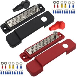 Name: RV Yacht 12-Way Busbar Maximum voltage: 48V DC Rated current of each terminal: 15A Rated current of the entire electric block: 180A Product function: Bring the wire harnesses together to reasonably store the wires inside the vehicle and boat. Scope of application: In the power system of automobiles, RVs, ships, yachts, etc. Tips: The product may be updated constantly ,Due To Different Batches, The Actual Product May Have Slight Differences Or Color Differences, Which Does Not Affect Use Colour:red+black Material:plastic Package Contents: 2 x red and black bus bar 2 x red and black sheath 32 x terminal block Only the above package content, other products are not included. Note: Light reflection and different displays may cause the color of the item in the picture a little different from the real thing. The measurement allowed error is +/- 1-3cm.