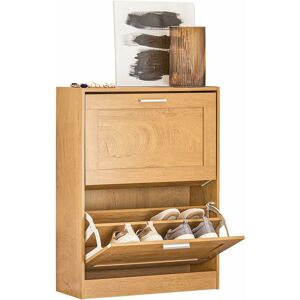 Modern design 2 drawers shoe cabinet is a great addition to your home. Ideally located in hallway or porch, this unit comes with plenty of storage. It provides a shoe storage compartment of 2 flip-drawers. 2 rows of spaces for each drawer. The panel in the flip-drawer is removable, so you can put it on or remove it due to different sizes shoes. The top of the shoe cabinet is ideal for storing something like keys, wallet you might need in reach, or some items like photos, plants you want to display. Coming with anti-tipping device, ensuring great stability and safety. The 23cm deep shoe cabinet is ideal for a narrow corridor. This shoe rack will keep your halls and entryway organized. Product Details Material: Particle board, MDF. Dimensions: W60 x D23 x H79cm. Weight: 12kg. Load capacity: 20kg. Item comes in a flat pack and requires self-assembly. Detailed instructions supplied. The decorative elements are not included in the delivery.