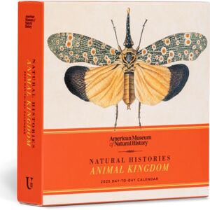 This day-to-day calendar celebrates the world’s diverse creatures, with spectacular illustrations from the American Museum of Natural History’s rare collections library. Inside the American Museum of Natural History is an eight-story library—one of the largest natural-science libraries in the Western Hemisphere—that contains nearly half a million volumes of illuminated monographs, pamphlets, reprints, and original rare books.Some of the most striking images from that collection are featured in this day-to-day calendar filled with colorful, beautifully rendered images from the animal kingdom—from iridescent insects, extraordinary birds, and majestic mammals to stunning sea creatures.With tear-off pages, day and date reference on every page, major and national holidays, and combined weekend pages, it is the ideal desktop accessory for natural science and art lovers alike. Features include: Day and date reference on every page, with combined weekend pages Major and national holidays in the US, Canada, and UK Tear-off pages Vibrant artwork on every page Recyclable cardboard backing with built-in folding stand for desk or tabletop display