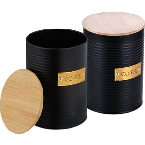 This stylish coffee box featuring "Coffee" lettering is perfect for all coffee enthusiasts. Whether for beans, ground coffee, pods, or capsules, this storage jar keeps your coffee fresh. The airtight lid protects the contents from moisture while preserving the aroma. Crafted from black metal and natural bamboo, the decorative tin design makes this coffee storage jar a striking addition to your kitchen. Coffee jar details - Dimensions H x D: approx. 16 x 11 cm - Volume: approx. 1.4 l - Weight: approx. 200 g - Material: steel, bamboo, silicone - Colour: black, natural Black coffee container with lid - Suitable for storing beans, ground coffee, pods, or capsules - Secure lid with silicone ring for airtight storage - The coffee bean box protects against moisture and maintains aroma - Stylish blend of black metal and natural bamboo - Decorative tin can design with "Coffee" inscription as a focal point in your kitchen Delivery Contents - Coffee storage box in chosen quantity - Decorative