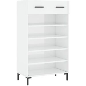 Keep your shoes organised and create a tidy environment with this elegant shoe cabinet! Durable material: The engineered wood is of exceptional quality with smooth surface and also features strength, stability and resistance to moisture. Ample storage space: This shoe cupboard has 1 drawer and 5 open compartments, providing ample storage space for all types of shoes. Stable cabinet top: The top of this shoe stand is suitable for placing your favourite decorative items such as vases, potted plants, etc. Practical design: The iron feet add an industrial style to your interior while ensuring stability. The aluminium drawer handles are stylish and durable. Warning: To prevent it being overturned, this product must be used with the provided wall attachment device. Colour: High gloss white Material: Engineered wood, iron, aluminium Dimensions: 60 x 35 x 105 cm (W x D x H) Feet height: 10 cm Assembly required: Yes Legal Documents: More details about preventing your furniture from tipping