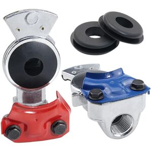 [WITH 2 EXTRA GASKETS] - Leaks are usually caused by wear and tear on high-quality materials. The extra washers keep the happy hands in excellent working condition. a very cost-effective solution. [NO-LEAK] - High-hardness steel clamp plates, lathe-machined port thread, smoother. ensure the happy hands are tightly connected under strong air pressure. The gaskets are made of high-quality rubber, the aging resistance is very strong, effectively prevent air leakage. Works well under long-term weather changes. Gladhands are color-coded red and blue for easy identification. [SIZE & QUANTITY] - Connection size: 1/2 NPT port, dimension: 4.1 inches x 2.2 inches. [WIDELY USED] - Service and emergency (polarized) or universal (non-polarized) configurations. Replace for 1011EF / 1011SF, for Velvac 035042 / 035045, for 278850 / 278851 and so on. Color: Red + Blue Material: Aluminum Package Contents: 2 x Happy Hand Seals 4 x O-Rings Only the above package content, other products are not included.
