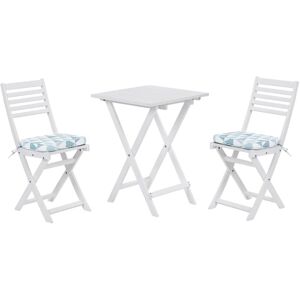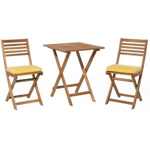 Outdoor Bistro Set for 2. Create an inviting lounge area in your garden thanks to this bistro set. Modern design chairs with rope, basket-weave back make it blend in seamlessly with traditional and minimalist decor styles. The robust metal frame provides maximum stability and support, while the soft, generously padded seat cushions guarantee the utmost comfort. The set comes complete with a square bistro table which brings a rustic touch with its light wood tabletop. Details: Product Type: Bistro Set Style: Modern General Color: Grey, Black, Brown Material Type: Metal Main Material: Steel Additional Material: Fabric Top Material: Synthetic Material Material Composition: 100% Polyester Finish: Powder Coated Seat Foam Density: 28 kg/m3 Seats Up To: 2 People Dimensions: Chair Dimensions: 50x50x81 cm Coffee Table Dimensions: 60x60x75 Seat Thickness: 7 cm Seat Height: 48 cm Overall Dimensions: 60x60x75 Weight: 17 kg Chair Weight Capacity: 130 kg Table Weight Capacity: 80 kg Offer Includes: