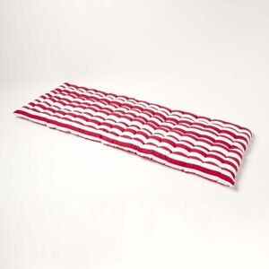 Brand Homescapes Size Available Three seater (143 x 48 x 5 cm) Colour Red Cover Material 100% Cotton Filling Polyester Care Instructions Machine Washable at 40°C. When not in use keep out of direct sunlight and rain Pack Includes 1 Bench pad Pattern Striped Red outdoor bench cushion, 100% cotton long seat pad with a tufted red and white stripe pattern, 2 seater and 3 seater bench cushions for garden and indoor use. Red Bench Cushion Add comfort to your outdoor seating area and garden benches with Homescapes' extra-long bench cushions. Available in 2 and 3 seater sizes and filled with a durable super microfibre, cushions are encased within soft 100% cotton and feature a stylish tufted design. Outdoor Cushion A great way to add colour to your home and garden, these red and white candy stripe cushions will complement many colour schemes and have been designed with style, comfort and durability in mind. A versatile cushion, they can also be used indoors in playrooms, windowsills or dining