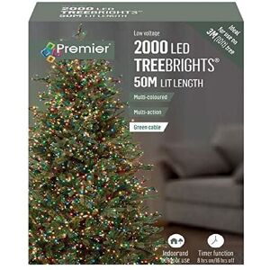 Four times as many LED's as normal lights, each one is just 2.5cm / 1" apart so you tree will really sparkle MULTI -ACTION : simply press a button on the controller to cycle through over 8 different flashing patterns, or just press once for always on INDOOR / OUTDOOR : Can be used anywhere and the cable from the mains plug to the first light is 10m! TIMER FUNCTION : 8 Hours on 16 Hours off Mains Powered 2000 Lights - Total length of lights 50m + 10m from first light to mains plug - Ideal for 2.7m (9 Foot) Tree 1500 Lights - Total length of lights 37.5m + 10m from first light to mains plug - Ideal for 2.4m (8 Foot) Tree 1000 Lights - Total length of lights 25m + 10m from first light to mains plug - Ideal for 2.1m (7 Foot) Tree 750 Lights - Total length of lights 18.7m + 10m from first light to mains plug - Ideal for 1.8m (6 Foot) Tree