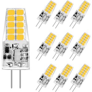 Base Type: G4 Power: 3.5W Voltage: AC/DC 12V Product Size: 9*13*37mm LED Model: 20*2835 SMD Beam Angle(°): 360 degrees Color Temperature: Warm White 3000K Luminous Flux: 350LM Note: 1, Please note the size of the bulbs before ordering to make sure they fit properly. 2, This G4 LED bulb is a low power consumption device with a working voltage of 12 volts AC/DC, a transformer is required to reduce the mains voltage to 12 volts. 4, Please turn off the power before installation to avoid the risk of electric shock to avoid. 5, This G4 LED bulb is not dimmable, please DO NOT use it with a dimmer switch, otherwise it may cause flickering or noise issues. 6, Please do not use this G4 LED bulb in a closed room, otherwise it will greatly shorten its lifespan. 7, If your G4 LED bulbs flicker or do not light after installation, do not worry, it may be that the wattage of the G4 LEDs is lower than the minimum load of your previous transformer. You can try to leave one halogen bulb in the fixture