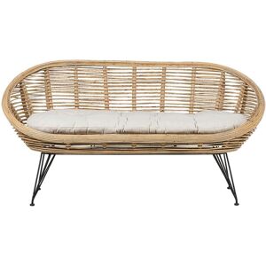 Outdoor Rattan Sofa. Enhance your living area with this modern 2-seater sofa, featuring a comfortable seat cushion for ultimate relaxation. The cushion case is removable and machine-washable, ensuring easy maintenance and lasting freshness. Crafted from elegant rattan, this stylish sofa combines contemporary design with practicality, making it a perfect fit for gatherings on any patio or garden. Enjoy both comfort and sophistication with this thoughtfully designed piece. Details: Product Type: Garden Sofa Style: Boho General Color: Natural, Beige Material Type: Rattan Main Material: Rattan Additional Material: Fabric Material Composition: 40% Polyester Seat Foam Density: 18 kg/m3 Seats Up To: 2 People Dimensions: Depth: 110 cm Seat Thickness: 5 cm Seat Height: 41 cm Width: 180 cm Height: 88 cm Seating Surface: 116x60x5 cm Weight: 20 kg Weight Capacity per Person: 200 kg Offer Includes: 1 x Seat Cushion, 1 x 2 Seater Sofa Key Features: Modern Patio and Garden Style, Adds Warmth to