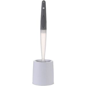 SILICONE BRUSH HEAD: With silicone brush heads, rust-proof, more durable and longer lasting than normal brush heads; no hair tangling and dirty problems, easy to wash and won't clog your toilet bowl. DRY QUICKLY & DRIP-FREE: The double-layer toilet brush holder is more sturdy and ventilated, which allows the brush head to dry quickly. And the removable base is drip-free, keeping your floor clean and tidy. ATTENTION: Although silicone bristles have many advantages, it is not easy to remove stubborn stains compared to a normal PP brush head, we recommend using it with a toilet cleaner. Color: white + gray Material: Stainless steel + PP + Size: 45 x 13.5 cm Package Contents: 2 x Toilet Brush Only the above package content, other products are not included. Note: Light reflection and different displays may cause the color of the item in a little different from the real thing. The measurement allowed error is +/- 1-3 cm.