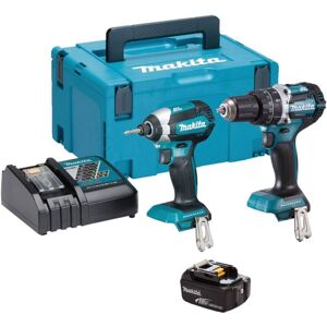 Makita: DLX2180TJ 18V Cordless Twin Kit Including the DHP484 Combi Drill, DTD153 Impact Driver with 2X 5.0AH Batteries, DC18RC Quick Charger and Makpac Carry Case Makita DHP484 LXT Brushless Combi Drill Tool Features: Brushless motor. Electric brake. 2 mechanical gears. Variable speed control by trigger. Forward/reverse rotation. LED job light. Compact design with an overall length of 182mm. Keyless chuck. Aluminium gear housing. All metal gear construction. Ergonomic soft grip. Belt clip. Tool Specification: Application Max Torque Hard/Soft 54/30 Nm. Torque Settings: 21 + Drill. Electric Brake. No. of Gears: 2 LED Job Light with Pre-glow. Rotation: Forward / Reverse. Variable Speed Control Trigger. No Load Speed High: 0-2000 rpm. No Load Speed Low: 0-500 rpm. 13mm Keyless Chuck Screw Capacity Machine Screw M6. Screw Capacity Wood Screw M10 x 90. Drill Capacity Concrete 13 mm Drill Capacity Metal 13mm Drill Capacity Wood 38mm Impact Rate High: 0-30000 bpm Impact Rate Low: 0-7500 bpm