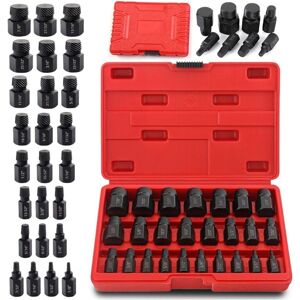 This Bolt Extractor Set includes a range of sizes from 1/8 inch (3.5mm) to 13/32 inch (10.3mm), with increments of 1/32 inch. 25pcs(7/8inch, 27/32inch, 13/16inch, 25/32inch, 3/4inch, 23/32inch, 11/16inch, 21/32inch, 5/8inch, 19/32inch, 9/16inch, 17/32inch, 1/2inch, 15/32inch, 7/16inch, 13/32inch, 3/8inch, 11/32inch, 5/16inch, 9/32inch, 1/4inch, 7/32inch, 3/16inch, 5/32inch, 1/8inch.) Damaged Bolt Extractor Set Crafted from heat-treated and premium Chrome Vanadium Steel, these extractors are highly resistant to wear, Non rusting, and deformation. Each tool undergoes precision machining and exhibits exceptional hardness for prolonged durability. The bolt extractors feature an internal left-handed spiral design, which provides superior grip and facilitates faster tapping. The reverse spiral flutes in the internal thread maximum gripping power, allowing the socket to tighten securely with every turn. Each tool is clearly marked with its corresponding size for effortless identification and