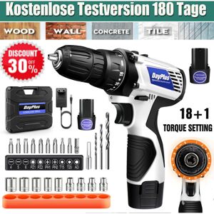 Dayplus - Cordless Comb Hammer Impact Drill Driver Electric Screwdriver Worklight Battery