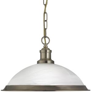 This retro ceiling pendant light Bistro with product code 1591AB is manufactured by Searchlight Lighting.The light features vintage and simplistic look, antique brass finish and acid glass shades.To suit your preference the chain suspension is easy adjustable for different ceiling heights.The Bistro range will be perfect complement for any kitchen and dinning room. FEATURES: * Ceiling pendant light * Antique brass finish * Acid glass shades * Class 1 (earthed) * Takes 1 x 60 watt ES E27 golf ball lamps - EXCLUDED * Height 22 cm * Total height 80 cm * Diameter 34 cm * Weight 1.20 kg