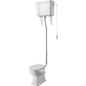 Kinston Traditional Comfort Height Toilet Pan with Low Level Cistern, Flush Pipe Kit & Soft Close Seat in White by Balterley Elevate your bathroom with the Balterley Kinston Comfort Height Toilet, blending classic Victorian elegance with modern accessibility. Crafted from durable vitreous china and finished in timeless white, it features a raised pan for easier use, polished chrome flush pipe, and a soft-close seat for everyday comfort. Supplied with cistern, flush pipe kit, handle, and seat for convenience. Fixings not included; partial assembly required. Designed with both style and practicality in mind, this comfort height toilet offers a taller pan that makes sitting and standing easier, ideal for improved accessibility. Pair with other Kinston ceramics for a coordinated, traditional bathroom suite. Product Highlights: Classic White Finish: Smooth, glossy surface complements both traditional and transitional bathrooms. Low Level Cistern Toilet: This traditional low level toilet