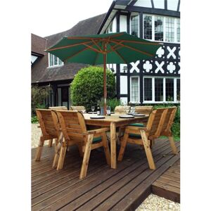 Introducing our timeless Traditional Eight Seater Table Set, a quintessential addition to your outdoor sanctuary. Crafted with the perfect blend of classic charm and enduring quality, this set is designed to elevate your outdoor dining experience for years to come. This set features four classic traditional chairs, offering comfort and elegance, along with two cozy two-seater benches, providing flexible seating arrangements. Accompanying these seating options is a sturdy square table complete with a pre-drilled hole, ready for easy installation of a parasol to provide shade during sunny days. Rest assured, your investment is safeguarded by our impressive 10-year rot-free guarantee, ensuring peace of mind and assurance of long-lasting durability. Each piece is treated with an oil-based water repellent preservative, enhancing its resistance to moisture and extending its lifespan even in outdoor conditions. Committed to sustainability, we source all materials for this set from