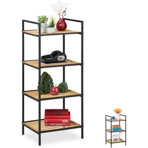This standing shelf unit will give you more storage possibilities for things like books, plants, DVDs, files or ornaments. This way, you can always store necessities of any kind neatly in reach in your kitchen, bathroom, living room, office or hallway. All the while, you can flexibly position the shelving unit where it is needed the most. Wherever you choose to use it, this shelf is sure to be an eye-catcher with its industrial design. Pick the version that best suits you from the various designs available. Freestanding Shelf Unit Details - Material: Bamboo, iron - Colour: Brown, black - Capacity: app. 5 kg per tier - Size per tier W x D: app. 39 x 32.5 cm - Distance between tiers: ca. 24 cm - Ground clearance : app. 9.5 cm 3-Tier Storage Shelf Details - Size H x W x D: app. 71 x 39 x 32.5 cm - Weight: app. 2.5 kg 4-Tier Storage Shelf Details - Size H x W x D: app. 95 x 39 x 32.5 cm - Weight: app. 3.4 kg Versatile Standing Shelving For Kitchen, Entry, etc - Large open shelves for