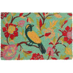 This unique doormat with a beautiful colourful bird surrounded by flowery blossoms and tree branches will put a smile on your guests' faces before they even open the door and give them a lovely greeting. It is made of a material mix of sustainable coconut and PVC. Thanks to the natural coconut fibres, the doormat is robust and durable. Thanks to its non-slip underside, the doormat sticks firmly to the floor when shoes are trodden on and keeps the living space reliably clean. The weatherproof shoe mat can be placed both indoors and outdoors. Note: Coir fibre is a natural material and can vary slightly in the structure and colour of the fibre. Coir Doormat Details - Dimensions H x W x D: approx. 1.5 x 60 x 40 cm - Weight: approx. 1.6 kg - Materials: Coir fibre, PVC - Colour: Multicoloured Non-Slip Doormat for Doors and Backdoors - Suitable for indoor and outdoor use - Helps keep dirt out of the flat or house- Made from robust, weatherproof coir fibres- PVC anti-slip coating - Print