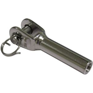 Swaged Jaw Terminal With 8MM ThreadCommonly used within the marine and architectural industries the Stainless Steel Swaged Fork Terminals stocked by SecureFix Direct are used to terminate wire rope. They are used to create a fixing point that allows your wire rope to be connected to another item, for example when making balustrade's. These are made from Grade 316 Stainless Steel which not only offers exceptional protection against rusting and corrosion, but it is also very pleasing to the eye which is important when being used in public places.These particular Swaged Fork Terminals have an 8MM thread for easy attachment to your wire rope. The Clevis Pin comes with a Spilt Cotter Ring to ensure that your Jaw Terminal is well secured in place. Please Note that these should only be installed by a competent person. It is also worth noting that it is advisable to use a marine grade sealant when installing to avoid water intrusion into your terminal.DimensionsA = 11.4MMB = 8MMC = 12MMD =