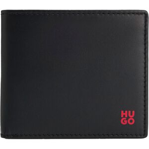 In smooth leather, this HUGO Menswear wallet adds sleek style to your everyday collection. Trimmed with a stacked logo in HUGO. This product contains at least 60% better raw materials. We continuously look for more responsible ways to produce and finish our products. A minimum of 60% of the leather used to make this product has been sourced from certified tanneries. Features:- 2 inside open pockets- 2 bill compartments- 4 credit card slots- Hardware finishing: Polished gunmetal hardwareSpecifications:- Material: 100% Cow skin, Lining: 100% Polyester- Measurements: 11 x 9.5 x 2.5cm