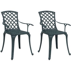 This garden chair set is perfect for having dinner, reading and relaxing with your family and friends. These dining chairs, made of cast aluminium, are sturdy and durable enough to provide long-term service. The rust-resistant and weather-resistant material makes the chairs ideal for outdoor use all year round. The high backrest and seat with a hollow design are comfortable and stylish. Ergonomically curved armrests can effectively relax your arms as well. These chairs are great on their own or complement other furniture sets. Marlow Home Co. Colour (Frame): Green