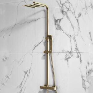 Fixed Square Shower Head & Shower Handset - Brushed Brass Stylish square rigid riser kit with fixed square shower head and shower handset Thermostatic shower valve Easy clean soft rubber nozzles - on shower head and handset Adjustable height telescopic riser from 935.5mm to 1250.5mm, even after installation Anti-scald function thanks to the thermostatic cartridge 200mm ultra thin solid metal fixed shower head Adjustable handset holder Stunning brushed brass finish