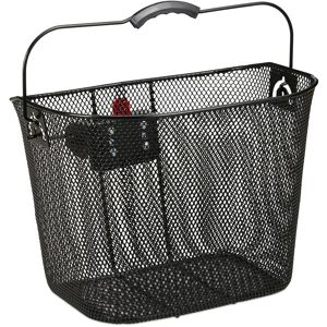This close-meshed handle bar basket is just as ideal for daily use as for bike tours or trips to the coast. Plenty of room for coats, bags or small shopping bags in the black metal basket and transporting items from A to B. The practical click system makes this the perfect bicycle basket allowing for quick attaching to and removing from the handle bars. Arrive at your destination, take the basket of the handlebars and carry your shopping or items in the wire basket directly inside. Handlebar Basket Details - Size H x W x D: app. 27 x 34.5 x 26 cm - Weight: app. 900 g - Maximum capacity: 5 kg - Material: Steel - Colour: Black Front Bicycle Basket - The quick click system allows for fast removing and attaching - Ideal for bike tours or daily use - Also great for quick stop shopping - With handle for carrying the basket with ease - Close-meshed design prevents things slipping through Included in Delivery - 1 x Bicycle Basket - 1 x Holder for Handlebars - Assembly Materials - Decorative