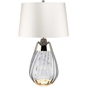 The elegant flowing twist of this table lamp's mouth-blown glass creates a striking visual with the polished nickel metalwork. It is combined with "dual-lit" system, a 4-way switch to light both the shade and the base (GU10 supplied in the base). The shade is made in the UK with satin-smooth fabric and matt silver laminate lining. Ebern Designs Base Colour: Transparent, Shade Colour: Black