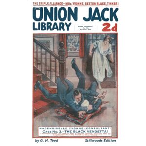 "THE BLACK VENDETTA!"Here is the third of the grand series that is causing such a sensation amongst the lovers of the fascinating Mademoiselle Yvonne.In this case she takes a very active part, and, aided by her friends Sexton Blake and Tinker, brings her detective faculties to bear on a very intriguing and dangerous problem.The story of the Black Vendetta of the Trudelli family, written in the author's best vein and thrilling from start to finish, will be remembered as one of the best we have ever had.