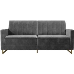 The sofa stands out from the rest and makes a statement! Modern and trendy, the futon is designed with a ribbed tufted cushioned back that features vertical stitching details in the backrest. The sofa is upholstered in rich velvet and sits on trendy gold powder-coated metal legs to add a touch of modern glam to your room décor. This upholstered sofa is constructed with pocket coil seating to offer optimal comfort for you and your guests during a movie night. This versatile sofa is also the perfect solution for accommodating overnight guests as its multi-functional split-back design allows you to independently recline the backrest between three positions: sitting, lounging, and sleeping. A sofa is a great option if you want a piece that will instantaneously add functionality and personality to your home. What are you waiting for? Blue Elephant Upholstery Colour: Grey