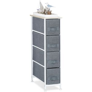 Whether high or low, narrow or wide, with or without shoe rack - Find just what you need for your home at Relaxdays. Browse our pages and choose one of seven lovely options. Each shelf features two to five practical fabric drawer boxes. You may use them to store stationery supplies, accessories or toys and save space. Get yourself the version that best fits your personal needs. Shelving System with Drawers Details • Choose between 7 different versions • Material: Fabric, metal, MDF • Colour: Grey drawers, white frame • Max. capacity per drawer: app. 10 kg Drawer baskets dimensions H x W x D: • A: 73 x 45 x 30 cm, app. 4.8 kg, 3 drawers • B: 95 x 45 x 30 cm, app. 5.9 kg, 4 drawers • C: 53 x 48 x 40 cm, app. 5.8 kg, 3 drawers • D: 76 x 20 x 48 cm, app. 4.7 kg, 4 drawers • E: 54.5 x 100 x 30 cm, app. 9.8 kg, 5 drawers • F: 77.5 x 83 x 29 cm, app. 9 kg, 5 drawers • G: 76 x 84 x 29 cm, app. 7.1 kg, 2 drawers Tip: See the images for the fabric drawer sizes Practical Multipurpose Shelf •