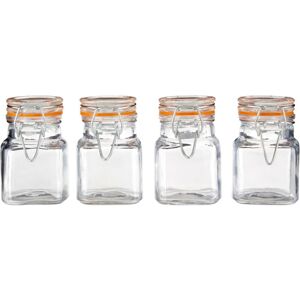 With an airtight rubber seal, these glass jars are ideal for preserving food or spices in, while the clear glass makes it simple to see what is inside. The bright orange rubber seal that sits between the lid and body of the jar provides a burst of colour. The metal catch lid makes these jars easy to open.