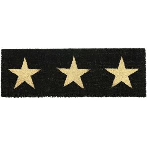 This unique black doormat with a print of three coir stars will put a smile on your guests' faces before they even open the door. It is made of a mix of sustainable coconut and PVC. Thanks to the natural coconut fibres, the doormat is robust and durable. Thanks to its non-slip PVC bottom, the doormat sticks firmly to the floor when shoes are trodden on and keeps the living space reliably clean. The weatherproof shoe mat can be placed both indoors and outdoors. Note: Coir fibre is a natural material and can vary slightly in the structure and colour of the fibre. Coir Doormat Details - Dimensions H x W x D: approx. 1.5 x 75 x 25 cm - Weight: approx. 1.1 kg - Materials: Coir fibre, PVC - Colour: Natural Coir, black Non-Slip Doormat for Doors and Backdoors - Suitable for indoor and outdoor use - Helps keep dirt out of the flat or house - Made from robust, weatherproof coir fibres - PVC anti-slip bottom - Friendly welcome for guests Included in Delivery - 1x Doormat - Decorative items are