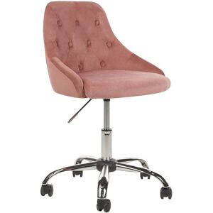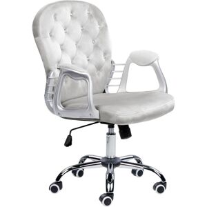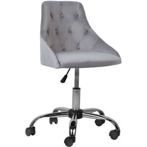 Elegant Desk Chair with Button Tufted Backrest. Upgrade your workspace with this stylish swivel office chair. Made only from high-quality materials, it features an extremely soft velvet upholstery and a foam filling, providing top levels of comfort. With sloped arm rests and a mid-back design, this chair ensures stability and comfort at all times, thanks to the chromed metal legs set on a star shaped base and a practical height adjustment gas lift. This piece is the ideal desk chair alternative, offering a refined and cosy look for any office space. Details: Product Type: Office Chair Style: Glam General Color: Beige, Black, Silver Material Type: Fabric Main Material: Velvet Additional Material: Metal Legs material: Metal Seat Material: Fabric Material Composition: 100% Polyester 360 Swivel: Yes Adjustable Parts: Seat Height Armrests: No Finish: Chromed Leg Caps/ Pads: Yes Tilting: No Dimensions: Depth: 60 cm Seat Height: 40-50 cm Width: 60 cm Height: 75-85 cm Seating Surface: 48x41