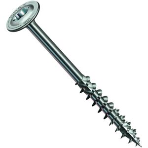 SPAX decking screws are the ultimate screw for outside decking, giving a professional invisible finish. The combination of 4CUT point and the patented ground serrations gives you a new top-notch SPAX. It not only stretches the material out, it divides the fibres while the thread with the optimized ground serrations drive the screw on. This prevents the material from splitting. The ridges mould into the wood surface, trimming off the drilled hole. SPAX will give trouble-free fastening in all varieties of working materials - from hard and soft wood to plastics to thin metal sheet and extruded profiles. Naturally the new SPAX has the building authority's approval. The 4cut point means the screw point takes immediate hold meaning there is no need for pre-drilling even in hard woods. The cylindrical head can easily be countersunk into the timber providing a perfect visual image. The fixing thread at the top of the screw permits a safe and permanent connection of wood parts. Features & Benefits • Cutting ribs help the head countersink into wood easily • No pre-drilling required even in hard woods • Ultimate holding power • Hard synthetic coating for easy driving • Deeper recess in screw-head for a stronger bit hold Specifications • Diameter: 5mm • Length: 60mm • Quantity: 100