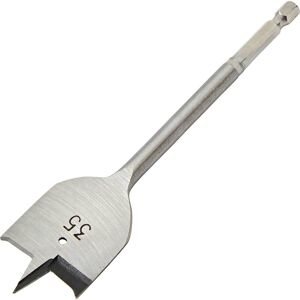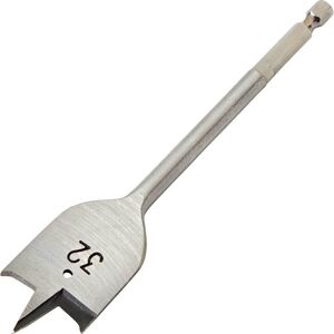 This hex shank flat wood drill bit has a precision double ground tri-point for fast waste removal and enhanced cutting performance. Made from hardened and tempered carbon steel. Suitable for drilling holes in softwood, medium hardwood, particle board, plasterboard and plastics. The hex shank prevents the bit from slipping from the chuck, enabling a quick change. Compatible with standard drill drivers and drills with a 10/13mm standard chuck. Features and Benefits • Precision double ground tri-point for fast waste removal and enhanced cutting performance • Made from hardened and tempered carbon steel • Suitable for drilling holes in softwood, medium hardwood, particle board, plasterboard and plastics • Hex shank for a quick change • Compatible with standard drill drivers and drills with a 10/13mm standard chuck Specifications Diameter: 32mm Length: 152mm Shank type: Hex shank Shank size: 6.35mm Type: Double ground Point style: Tri-point Weight: 51g