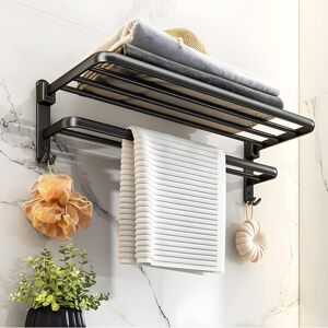 【Streamlined Trapezoidal Design】The spacing between the bathroom towel rack has been finely measured to ensure good ventilation and cleanliness, and the layered design allows for dry and wet separation. The lower self-adhesive towel rack can be used to hang wet towels, and the upper towel rack (which can be folded 90 degrees, space utilization is more reasonable) can be used to store bath towels and clothes. 【Easy to Install】Super glue installation without drilling holes (reminder: for better adhesion, please wait 72 hours for the glue to adhere to the wall before use). Of course, you can also choose drilling installation, we also provide drilling accessories. 【Minimalist Design】 Simple lines in the product, square base, simple and generous appearance, widely used in homes, hotels, rental rooms. 【Material】 Made of space aluminum, light and strong (recommended self-adhesive installation