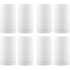 16 WIDE MOUTH LIDS: Scratch-resistant. Fit jars with an outer diameter of 86 mm (3.38 in). Fits More Brands: Caps fit all sizes of glass jars. Fit small 4 oz wide mouth jars up to large 64 oz wide mouth jars. are great gifts for friends who use canning jars for kitchen storage and food preparation. Leakproof Versatile Storage: Perfect for freezer and refrigerator, as well as dry and liquid storage, such as cereal, candy, fruit, pickles, salad, milk and smoothies, etc. Color: White Material: Plastic Size: 86mm in diameter Package Contents: 64 * Jar Lids Only the above package content, other products are not included. Note: Light shooting and different displays may cause the color of the item in a little different from the real thing. The measurement allowed error is +/- 1-3 cm.