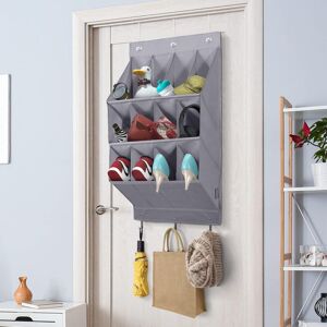 Large Capacity: The over the door shoe organizer measures 6.7 x 2.56 x 13.87 inches (L x W x H) with 12 large pockets. It is a great over the door shoe organizer that can save more space on the door, closet and wall, making your room more clean and tidy. Large Deep Pocket: The sloped open design makes it easy to store and access items. Multipurpose Usage: This hanging shoe organizer for closet not only can effectively store shoes, but also can be widely used to store toys, towels, cosmetics, etc. It can be hung on the door, mounted on the wall or hung in the closet to save space.