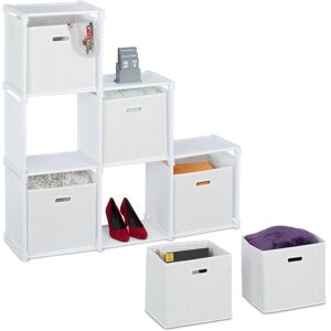 Make the most of the space under your stairs or pitched roof with the modular Step Shelf. You can use the open spaces as shelving or store your things in the practical fabric baskets. To remove the baskets, simply pull them out using the recessed handles. Use the shelf as a room divider in the living room or to store scarves in the hallway. The staircase shelf is also ideal for a teenager's room. Customise your cube shelf to suit your needs with the simple plug-in system. Staircase Shelf in Detail - Overall dimensions H x W x D: approx. 110 x 108 x 31 cm - Internal dimensions of open compartments H x W x D: approx. 36 x 38 x 30.5 cm - Interior dimensions fabric baskets H x W x D: approx. 30.5 x 32.5 x 26.5 cm - Total weight: approx. 4.9 kg - Load capacity per cube: approx. 8 kg - Material: Fleece, steel, plastic, cardboard - Colour: White Cube Shelving with 6 Compartments - For clever storage under sloping ceilings or stairs - Easy to assemble without tools thanks to plug-in system
