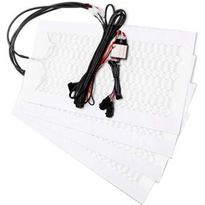 Features: Fiber material, not easy to corrode or break Two heating pads for each seat: 1 on the back and 1 on the bottom Apply to any fabric, leather or vinyl covered Continuous temperature monitoring prevents overheating, safe and reliable Adhesive included, to hold in place when reinstalling the seat cover A necessary comfort for winter riding Specifications: Material: Fiber + Plastic Color as shown Dimension(unit): approx. 480mm x 270mm Length: 2.5m Rated power: DC12V Power: 25 watts/pad Thermostat: 65± 5°c Package Contents: 1X Switch Wiring Harness 4X Fiber Heating Element Pad Only the above package content, other products are not included. Note: Light reflection and different displays may cause the color of the item in a little different from the real thing. The measurement allowed error is +/- 1-3 cm.