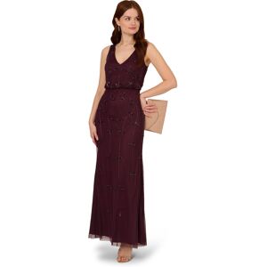 Put a little sparkle on display when you rock this sleeveless blouson gown. This formal dress features a sleeveless blouson bodice, deep v-neckline and back, and a soft skirt. Crafted with a luxe mesh fabric that is fully lined, this evening gown is embellished with sequin and beaded vines. The neckline and armholes of this gown are trimmed in beading for added sparkle. A hidden zipper closure at the centre back completes the design. This sleeveless beaded gown is a stunning look for a wedding guest or bridal party and pairs well with neutral or metallic accessories.