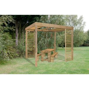 The Pergola from Forest Garden is a stylish, contemporary design that will create a stunning feature in your garden. It's the perfect spot to eat and entertain. The laddered side and roof panels add an extra dimension to the structure and are fantastic for training climbing plants and creating your own shade. The pergola is manufactured using European softwood, which is slow growing, resulting in stronger and more robust timber. To improve the longevity of the timber it has been Pressure Treated to give it a 15-year manufacturer's guarantee against rot and fungal damage. Delivered flat packed for self-assembly, fixings, and instructions all included. Forest Garden