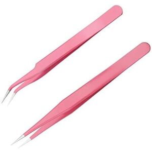 Eyelash Extension Tweezers, 2 Pcs Stainless Steel Eyelash Extension Tweezers Straight & Curved Tip Eyelash Tweezers Tweezers Nippers Specification: Material: stainless steel Color : pink Straight tweezers size: 13.5cm×1cm Curved tip tweezers size: 11.6cm×1cm This eyelash tweezers is made of high quality stainless steel, not easy to bend, strong and durable. Eyelash extension tweezers are perfect for selecting, isolating and picking up eyelashes. Straight tweezers can be used to pick up fine hair; Curved tip tweezers are great for separating eyelashes and are ideal tools for eyelash extension.