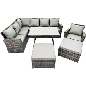 This patio corner sofa set can be used both indoors and Outdoor,with high quality PE rattan and durable galvanized steel construction for sturdiness and long lasting. Outdoor garden furniture can also be placed on the patio or balcony,The design of this rattan furniture is a perfect blend of country chic and modern minimalism, adding an elegant touch to your house. Set dimensions: •1 x 3 Seater sofa with two arm : 170L x 69W x 79H cm •1 x 3 Seater sofa with single arm: 160L x 69W x 79H cm •1 x Rectangular Dining Table :110L x 70W x 70H cm •2 x Big Footstool :65L x 65W x 34H cm •1 x Chair: 74W x 69D x 79H cm Dark Grey Mixed rattan with dark grey fabric .Color may vary due to light or monitor .we are unable to return the item due to this problem .Please consult before purchase if you have requirment on color saturation. Items Comes Flat Packed And Easy to Assemble,Sturdy Galvanized Steel Tube Metal Frames With Powder Coating To Prevent Rust.Ergonomic High Back And Declining Design For