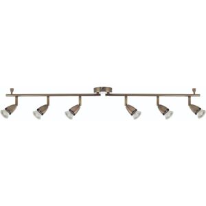 This contemporary six bar ceiling spotlight Amalfi, with product code 61001, is manufactured by Saxby Lighting. The fitting features antique brass finish and 350 degree rotation of the heads. Product is suitable for use with energy efficient lamps. Amalfi practical design will be ideal choice for any interior. FEATURES : Six bar ceiling spotlight Antique brass finish 2 year warranty Dimmable Takes 6 x 50 watt GU10 reflector - excluded Class I - Earthed 350 degree rotation and 90 degree tilt Weight 1.371 kg Projection 160 mm Length 960 mm Width 90 mm