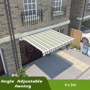 Features -Recommend to fix on concrete wall instead of wooden wall. -The angle of this folding arm awning can be adjusted, according to customer's habits and angle of sunshine in different season. -Bigger roller, front bar and support arms, compared with our normal type. -Perfect for shading of windows and balcony doors. -Full Stainless Aluminium frame and arm makes the awning more sturdy and uneasy to get rusted. -With double steel cables in the center joint of arms makes it easier to project and retract. -Side covers on the roller support makes your awning elegant looking. -Great water resistance and UV protection. -The slope of the awning approximately 5-35 degrees adjustable from the horizontal -Retractable, can be opened as much or as little as you like up to the max projection. -Comes with complete accessories, ready to be fitted. -Easy to clean with sponge and cloth. -Come with wall installated brackets and anchors. -Colour:Multi-stripe -Torsion bar: 40x40x1.2mm -Aluminium