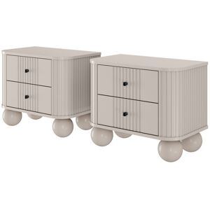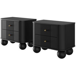 The Vesper bedside tables bring a sleek and modern touch to your bedroom decor. Featuring a sophisticated finish with ribbed detailing on the drawers, these tables offer a chic design that suits minimalist and contemporary interiors. The wooden sphere legs add an elegant, retro-inspired twist, making them a standout piece next to your bed. With their compact design, they perfectly fit into smaller spaces while still making a bold style statement. Ivy Bronx Colour (Drawer): Black/Black, Top Colour: Black, Base Colour: Black